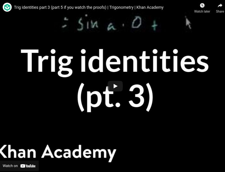 Khan Academy: Trigonometry: Trig Identities Part 3