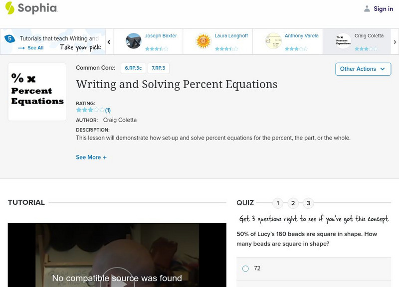 Sophia: Writing and Solving Percent Equations