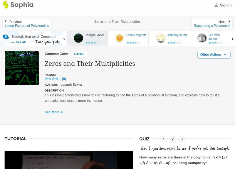 This video lesson demonstrates how to factor a polynomial to find its zeros and their multiplicities. Students can check their understanding with an assessment.