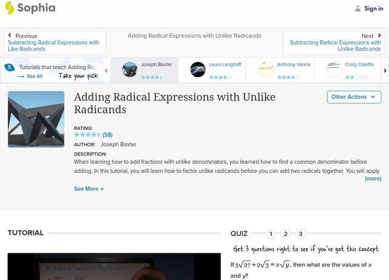Sophia: Adding Radical Expressions With Unlike Radicands