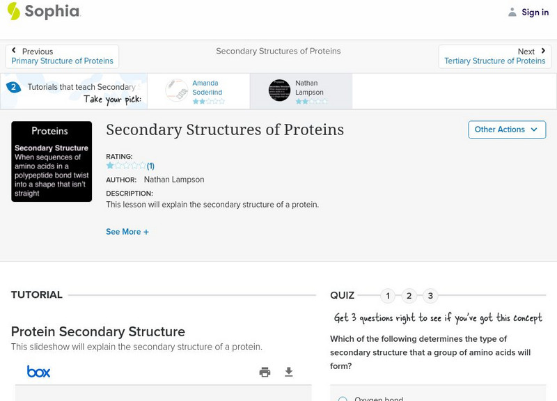 Sophia: Tertiary Structure of Proteins: Lesson 1