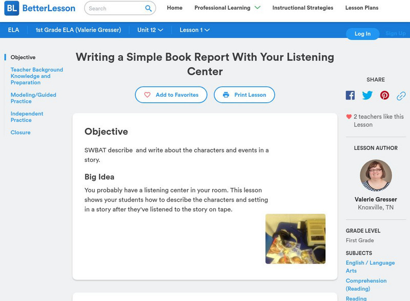 Better Lesson: Writing a Simple Book Report With Your Listening Center