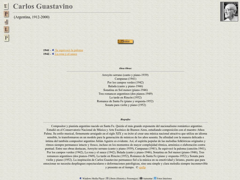 This page has a brief bibliography of the Argentine composer and pianist, Carlos Guastavino.