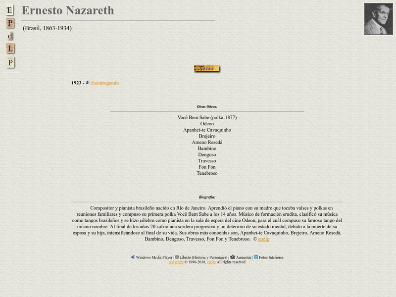 This page has a brief bibliography of the Brazilian composer and pianist Ernesto Nazareth.