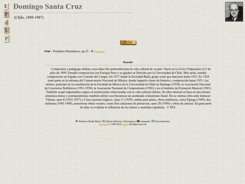 This page has a brief bibliography of the Chilean composer and pedagogue Domingo Santa Cruz.