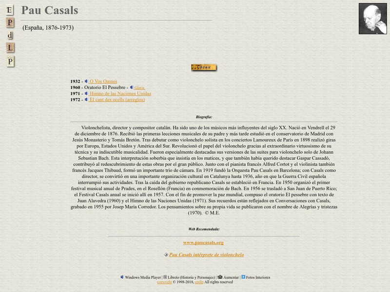 This page has a brief bibliography of the Spanish composer and violinist Pau Casals.