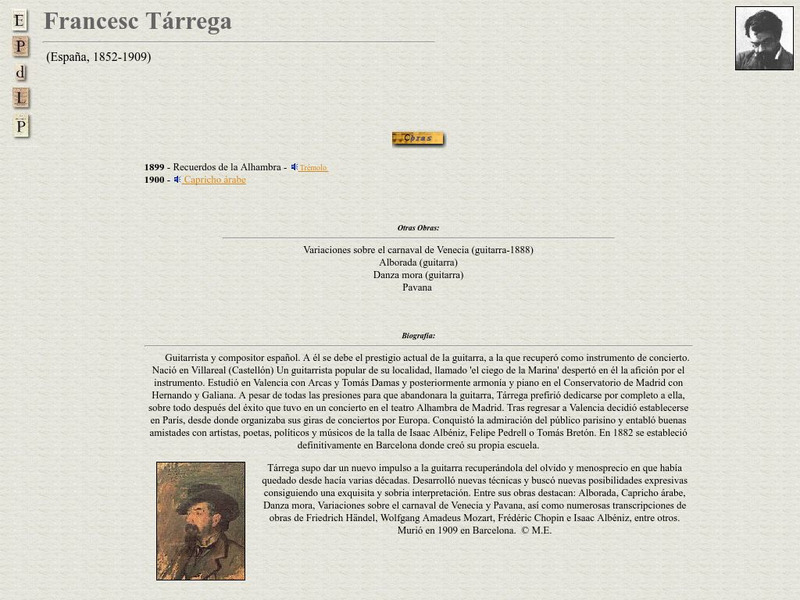 This page has a brief bibliography of the Spanish composer and guitarist Francesc Tarrega.