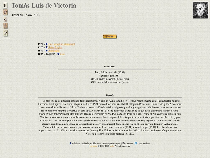 E Pd Lp: Tomas Luis De Victoria Biography (In Spanish)