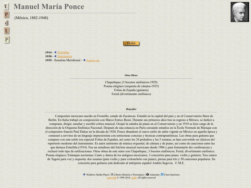 This page has a brief bibliography of the Mexican composer Manuel Maria Ponce.