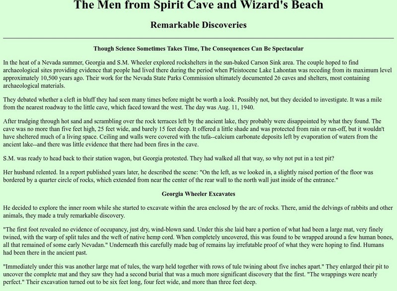 Read about the discoveries of the Spirit Lake Man and Wizard's Beach Man.
