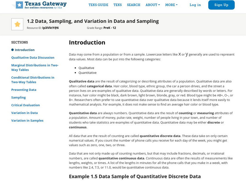 Texas Gateway: Data, Sampling, and Variation in Data and Sampling