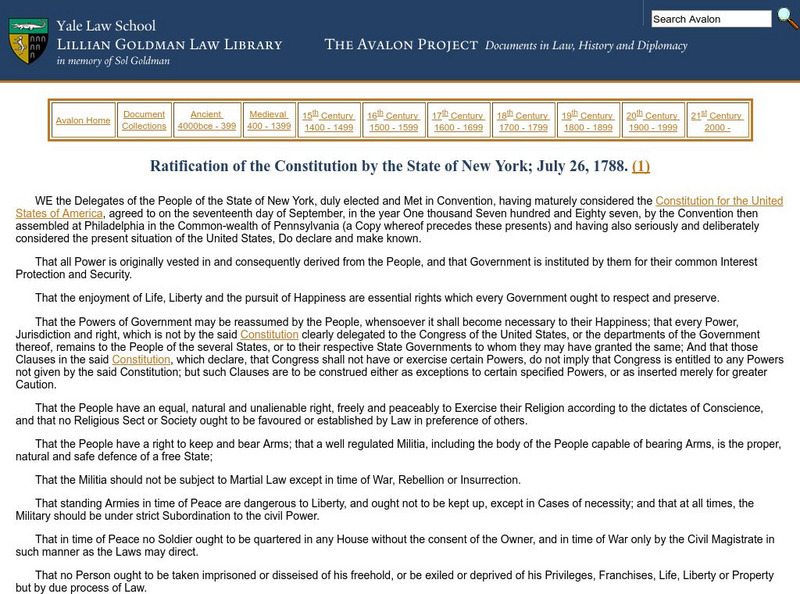 Avalon Project: Ratification of the Constitution by the State of New York