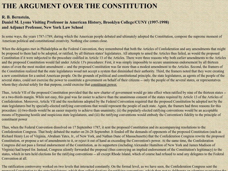 The National Humanities Center provides a full-length essay on the constitutional debate during the time of the Constitutional Convention.