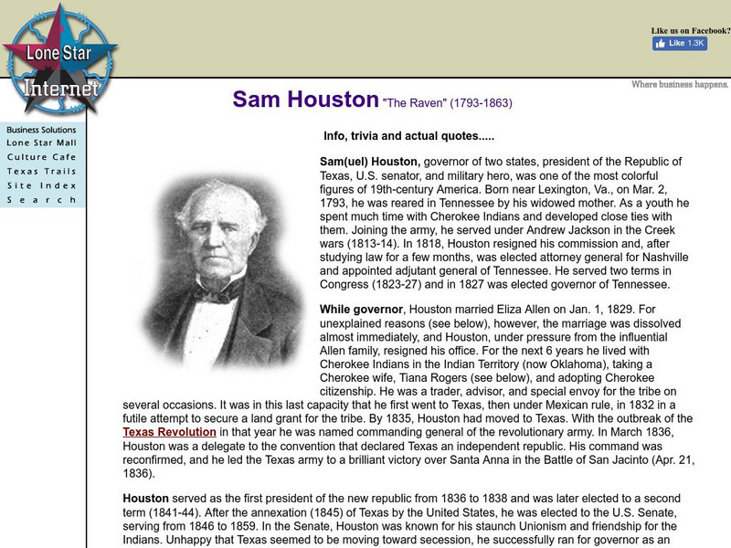Lone Star Internet: Sam Houston "The Raven" (1793 1863)