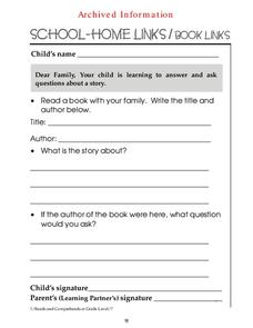 In this reading a book at home activity, 1st graders choose a book to read at home with a family member and then answer 2 short answer questions about the book.