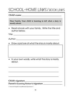 In this reading comprehension worksheet, 1st graders choose a book to read at home with a family member and then answer 4 short answer questions over the book.