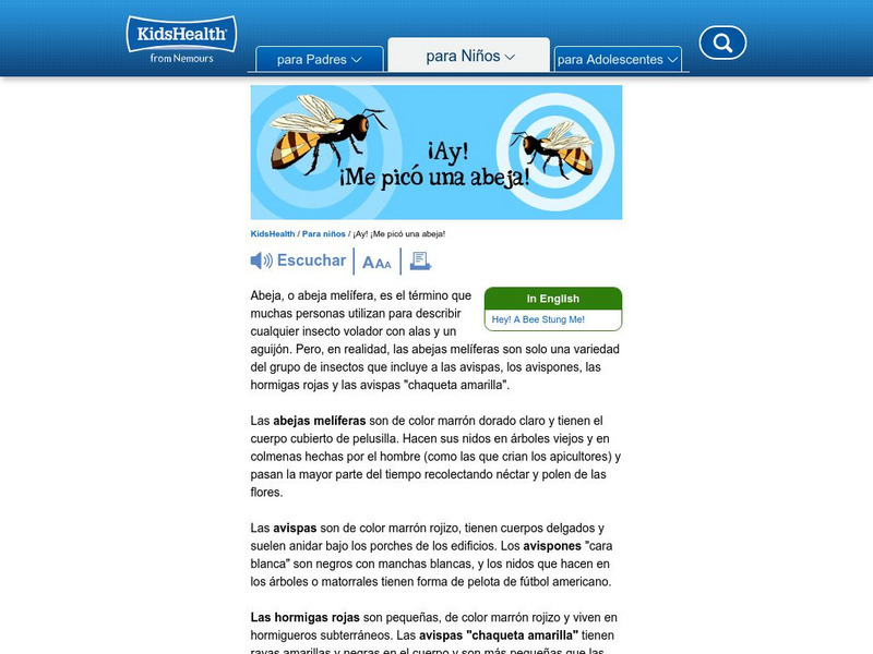 Kids Health: Ay! Me Pico Una Abeja!