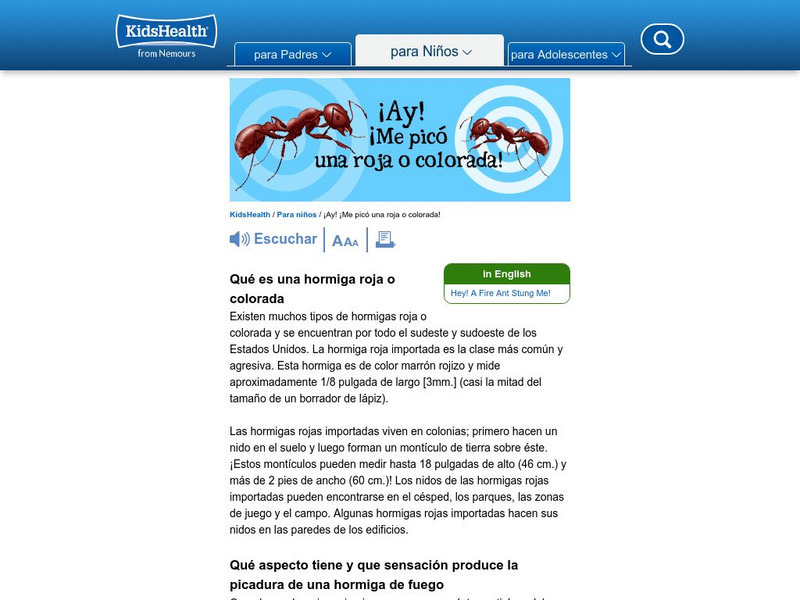 Kids Health: Ay! Me Pico Una Roja O Colorada!