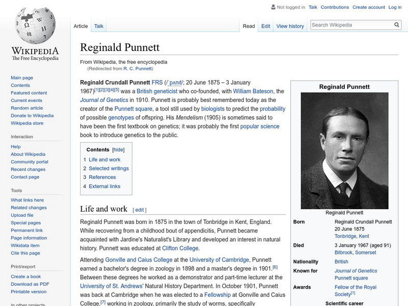 This site has biographical information on Punnett, supplemental links, and bibliographical information as well.