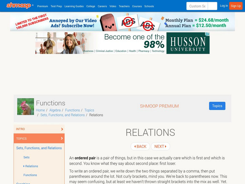 Varsity Tutors: Hotmath: Algebra Review: Relation