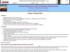 Learners explore air pressure. They observe what happens when you drink from a straw. Students experiment and create models to prove examine air pressure and vacuums. Slearners contrast how linear and relational casusal models explain...