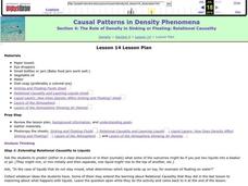 Pupils consider density and how it affects sinking and floating. Students make predictions, test liquids, and observe why some liquids sink and others float. They perform experiments to determine relational causality and how liquids...