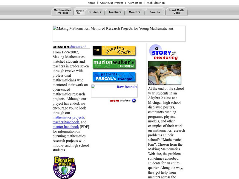After pairing professional mathematicians with groups of students, wonderful activities emerged. There are projects on this site, and use them in your own classroom.