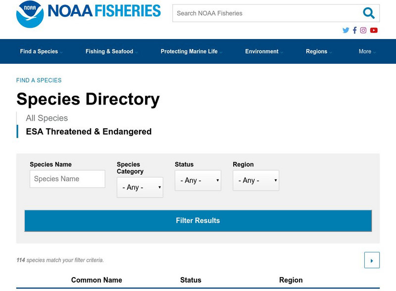 "There are currently seven species of cetaceans in U.S. waters that are protected under the Endangered Species Act." This site provides links to each species as well as provides colorful and engaging pictures.