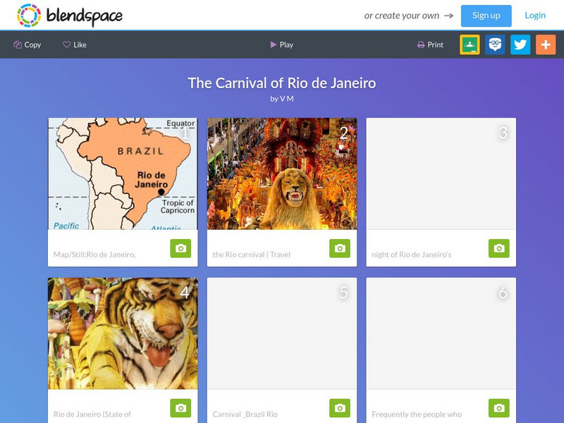 A learning module with eight images, a quiz, and a video about the Carnival in Rio de Jeneiro.