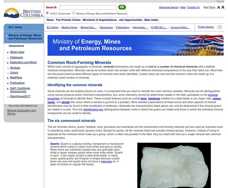 B.c. Ministry of Energy and Mines: Common Rock Forming Minerals