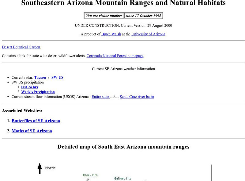 Provides maps and descriptions of mountain ranges located in Arizona. Each range is linked to a series of full color pictures.