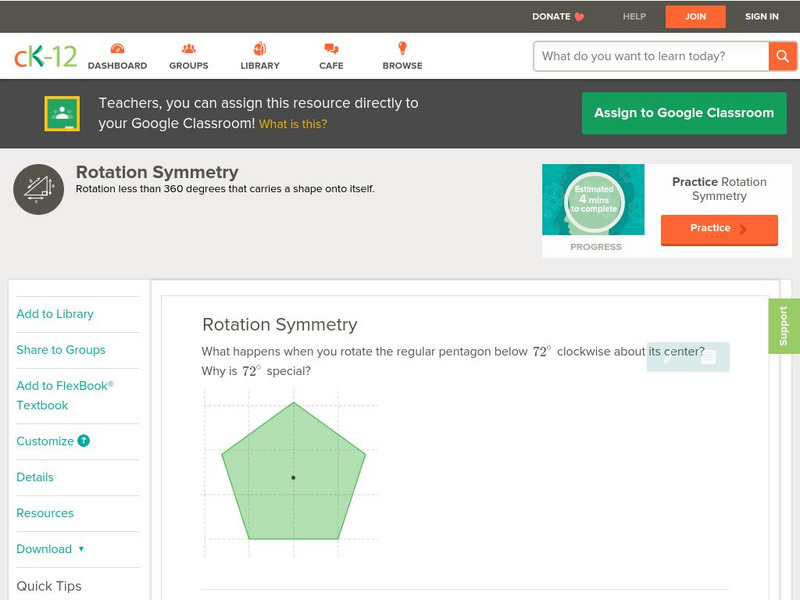 [Free Registration/Login may be required to access all resource tools.] This concept teaches students how to determine whether or not a shape has rotation symmetry.