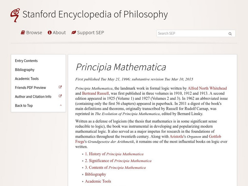Stanford Encyclopedia of Phil.: Principia Mathematica