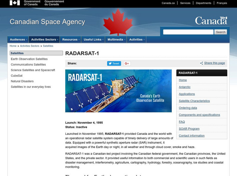 Access materials and content for a teaching unit on RADARSAT-1 satellite technology.