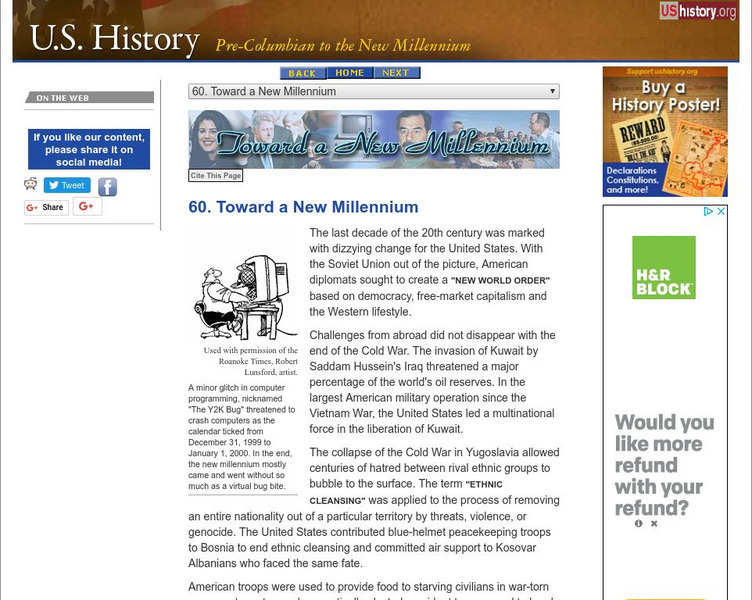 A brief overview of the United States and the world on the cusp of the 21st century.