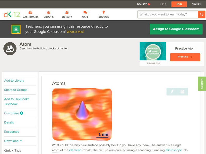 [Free Registration/Login may be required to access all resource tools.] Atoms and how they are related to elements, and the particles that make up atoms.