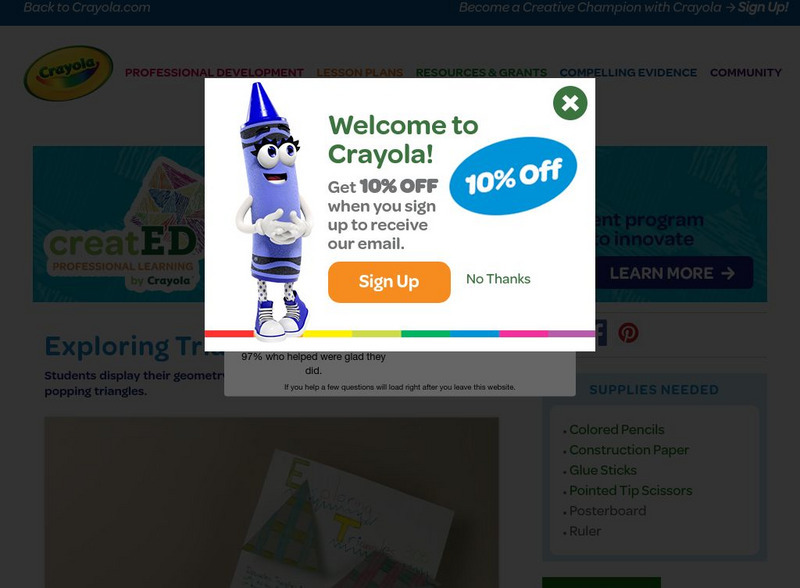 Here's a great geometry activity to display students' knowledge of the different types of triangles. Provides resources and adaptations to supplement this instructional activity. (To access this lesson plan, you must register with...