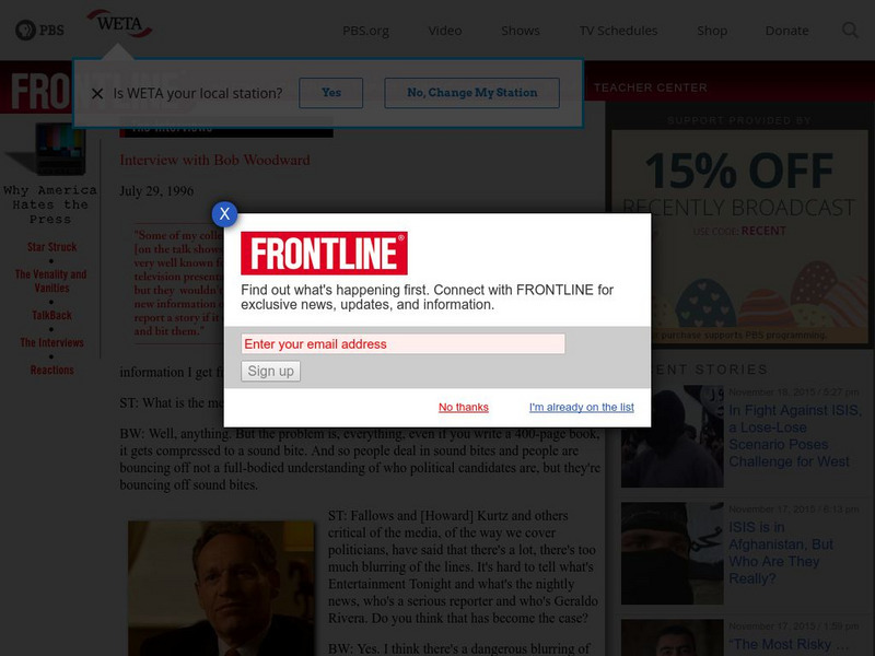 Transcript from an interview with Bob Woodward where he relates his feelings on many topics from today's media to the Watergate story.