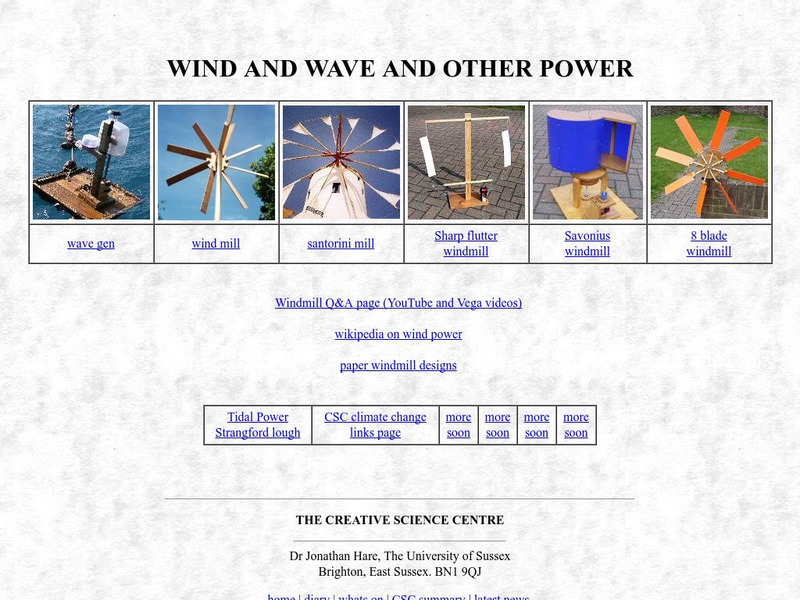 A collection of links to projects and information on how to make different types of windmills, and a wave powered electricity generator.