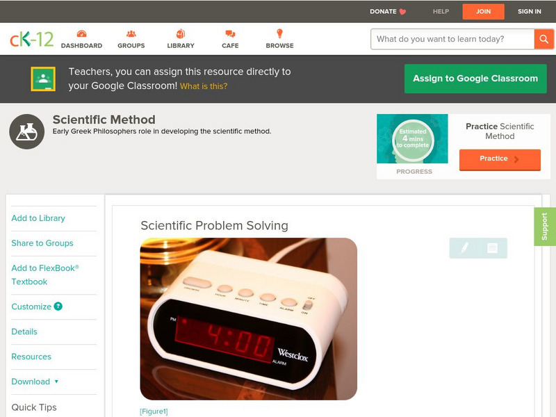 [Free Registration/Login may be required to access all resource tools.] Describes scientific problem solving and the scientific method.