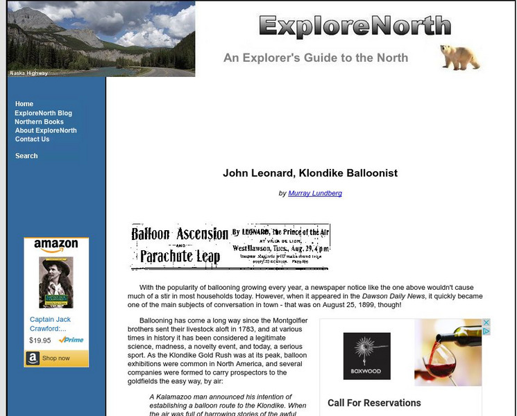 This is an interesting tidbit of Yukon history about a balloonist who put on public shows in Dawson City around 1900 during the time of the Klondike Gold Rush.