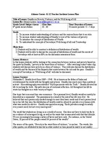 Eighth graders explore the concept of Sarvodaya. In this nonviolent resistance lesson, 8th graders listen to a lecture about Gandhi's teachings and determine how poverty is a form of violence.