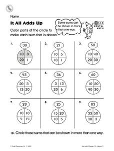 In this mental math addition activity, students determine sums. In this problem solving activity, students write answers to twenty problems.