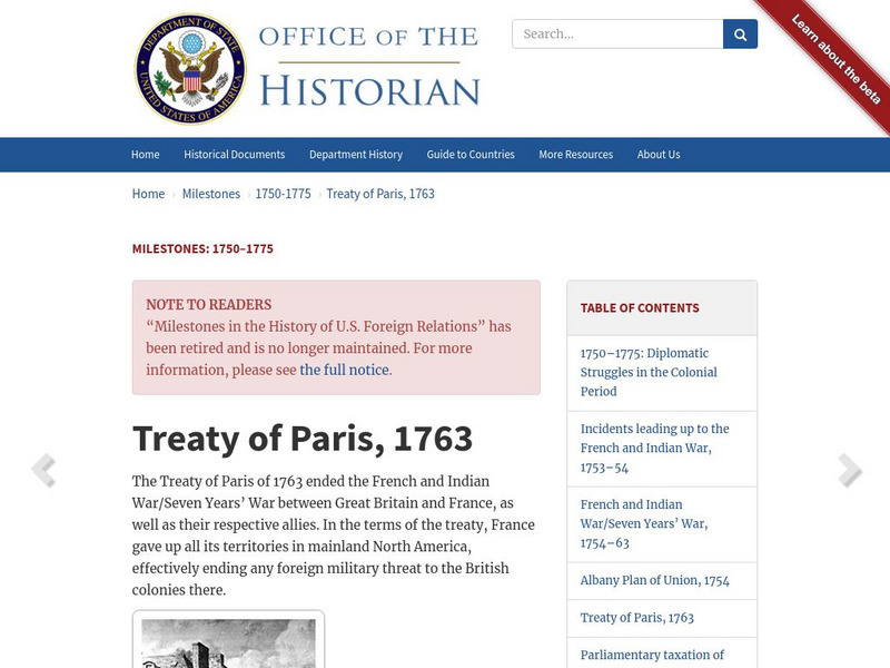In this article you will find a brief description of the Treaty of Paris that ended the Seven Years' War and gave all French land in North America to England.