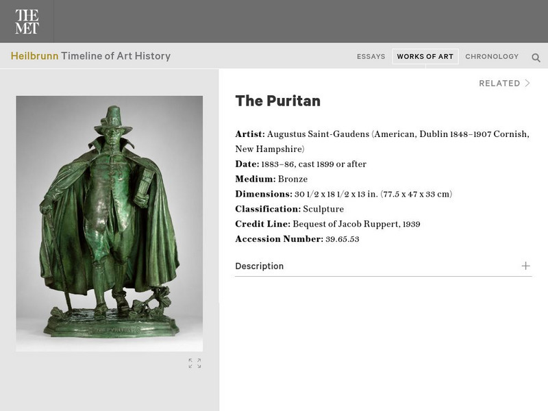 From the Metropolitan Museum of Art this Victorian era neo-classically inclined bronze sculpture "The Puritan" by the American artist Augustus Saint-Gaudens. The sculpture is presented as an enlargeable image with a description and lonks...