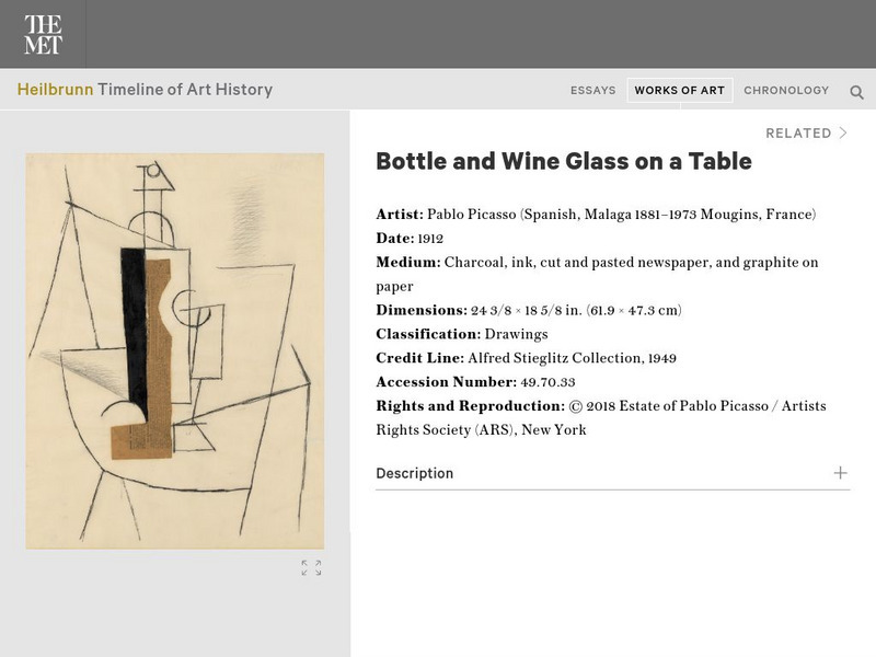 Metropolitan Museum of Art: Bottle and Wine Glass on a Table, Pablo Picasso