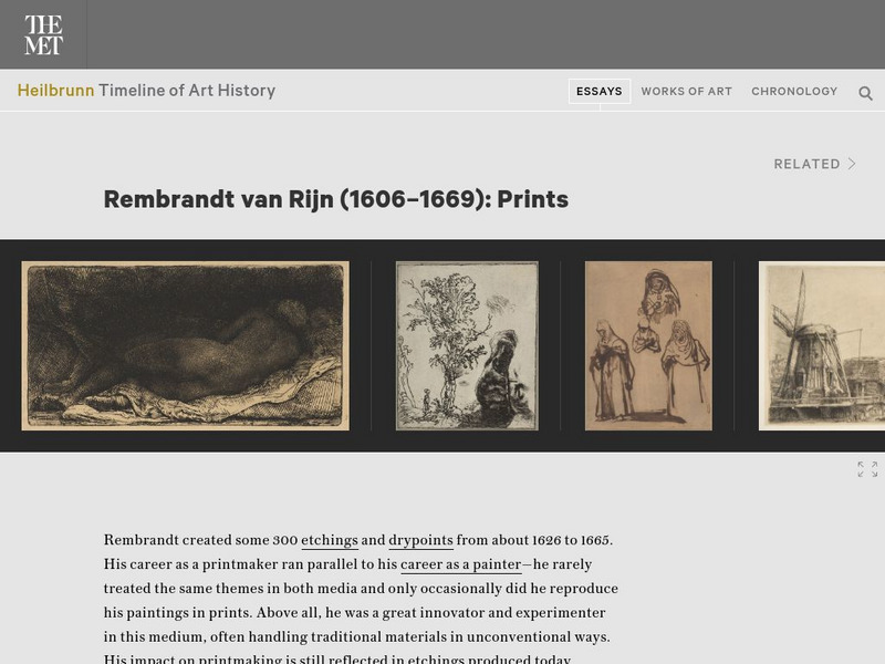 The Metropolitan showcases all the etchings and drypoints in its collection by Rembrandt on this page. Here you can read about his lifelong experiments with printmaking and also take in interesting tidbits about each work separately.