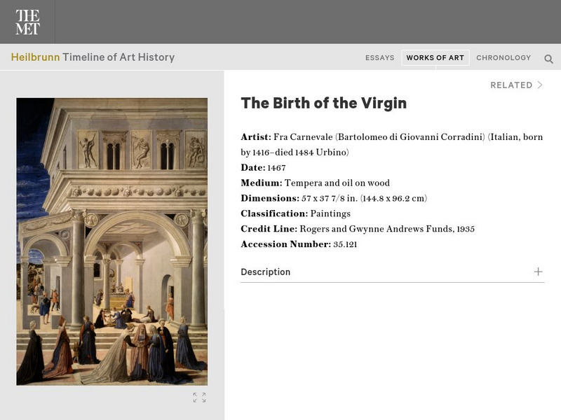 From the Metropolitan Museum of Art this page details the early Renaissance painting by Fra Carnevale "The Birth of the Virgin" from 1467, with a description and images of the piece.