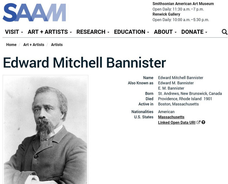 As part of the Smithsonian Art Museum's database of artists, this site provides very brief biographical information on Edward Mitchell Bannister in addition to an extensive listing of his works as displayed at the museum.