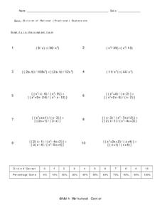 In this rational expressions learning exercise, 9th graders solve 10 different problems that include multiplying various fractional expressions. First, they multiply the numerators of each fraction. Then, students multiply the...